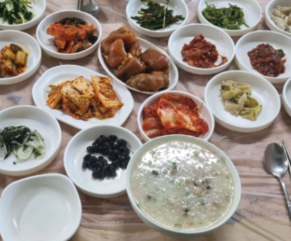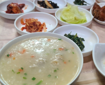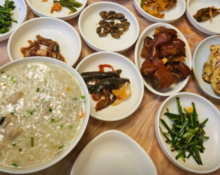 조개향 가득한 따끈한 죽에 푸짐한 반찬 한 상이 더해지니, 배만 채우는 식사가 아닌 ‘마음까지 채워지는’ 식사가 됩니다.